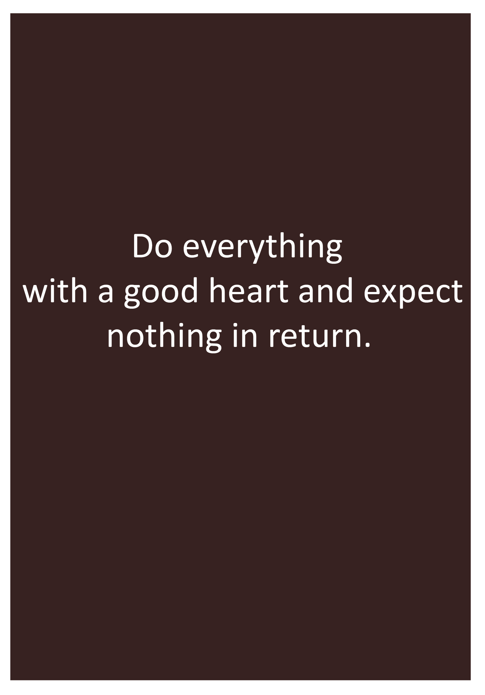 Do everything with a good heart and expect nothing in return.