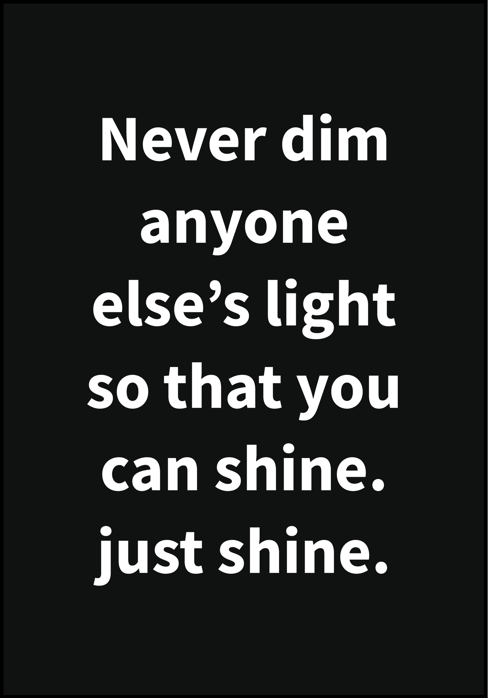 Home Text Posters Never dim anyone else’s light so that you can shine. Just shine