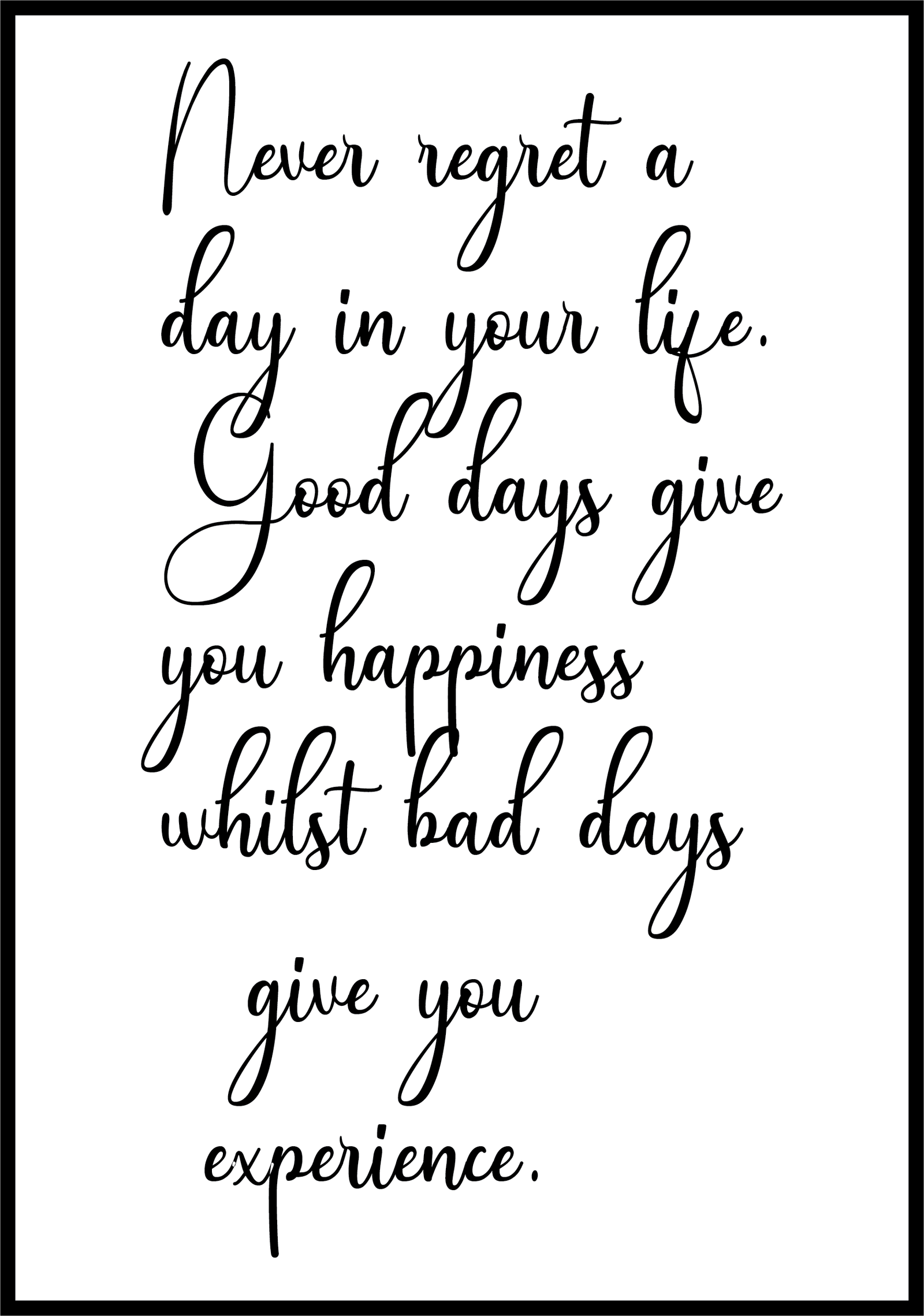 Home Text Posters Never regret a day in your life you happiness bet doo whilst had days give you experience.
