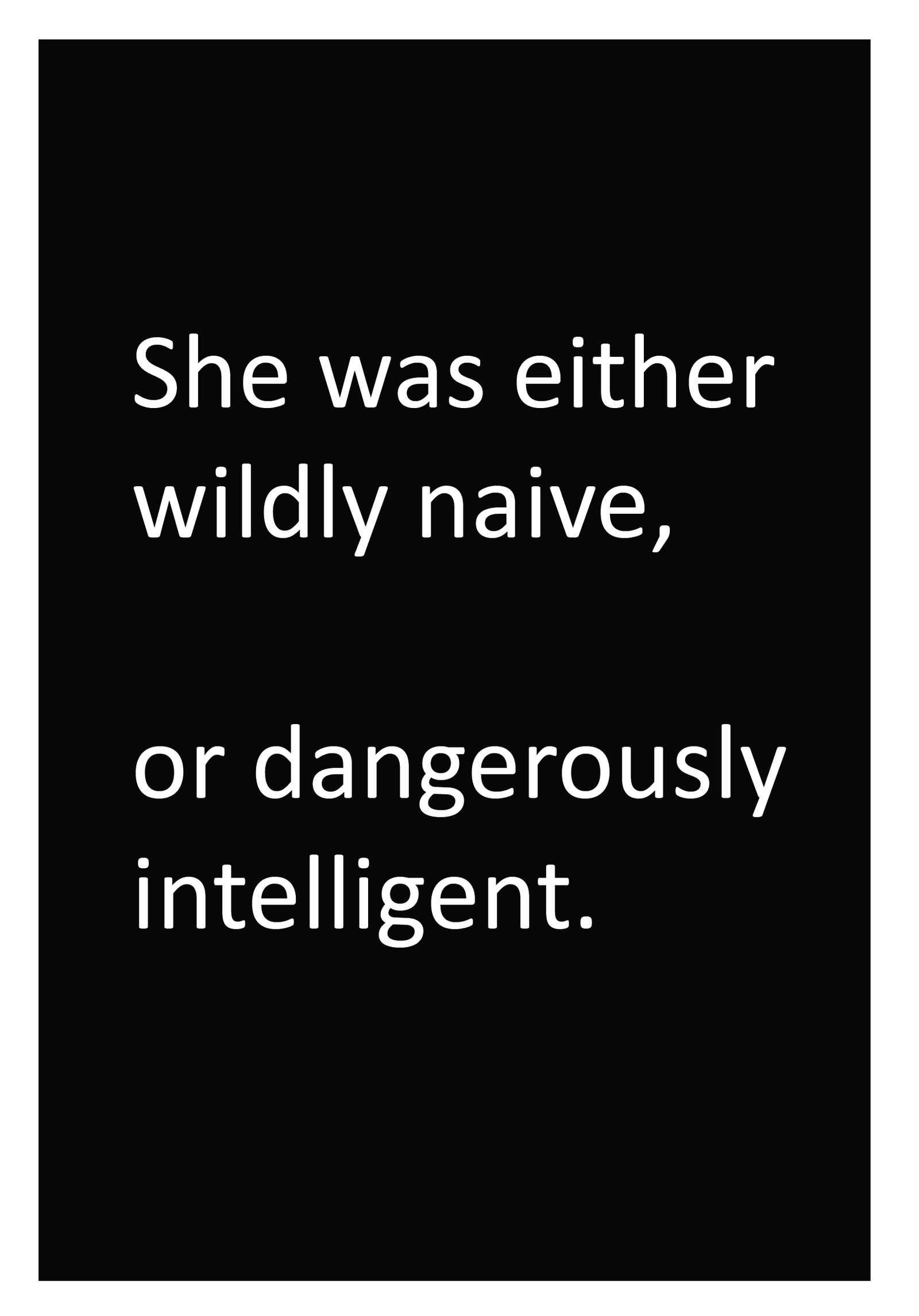 Home Text Posters She was either wildly naive, or dangerously intelligent.