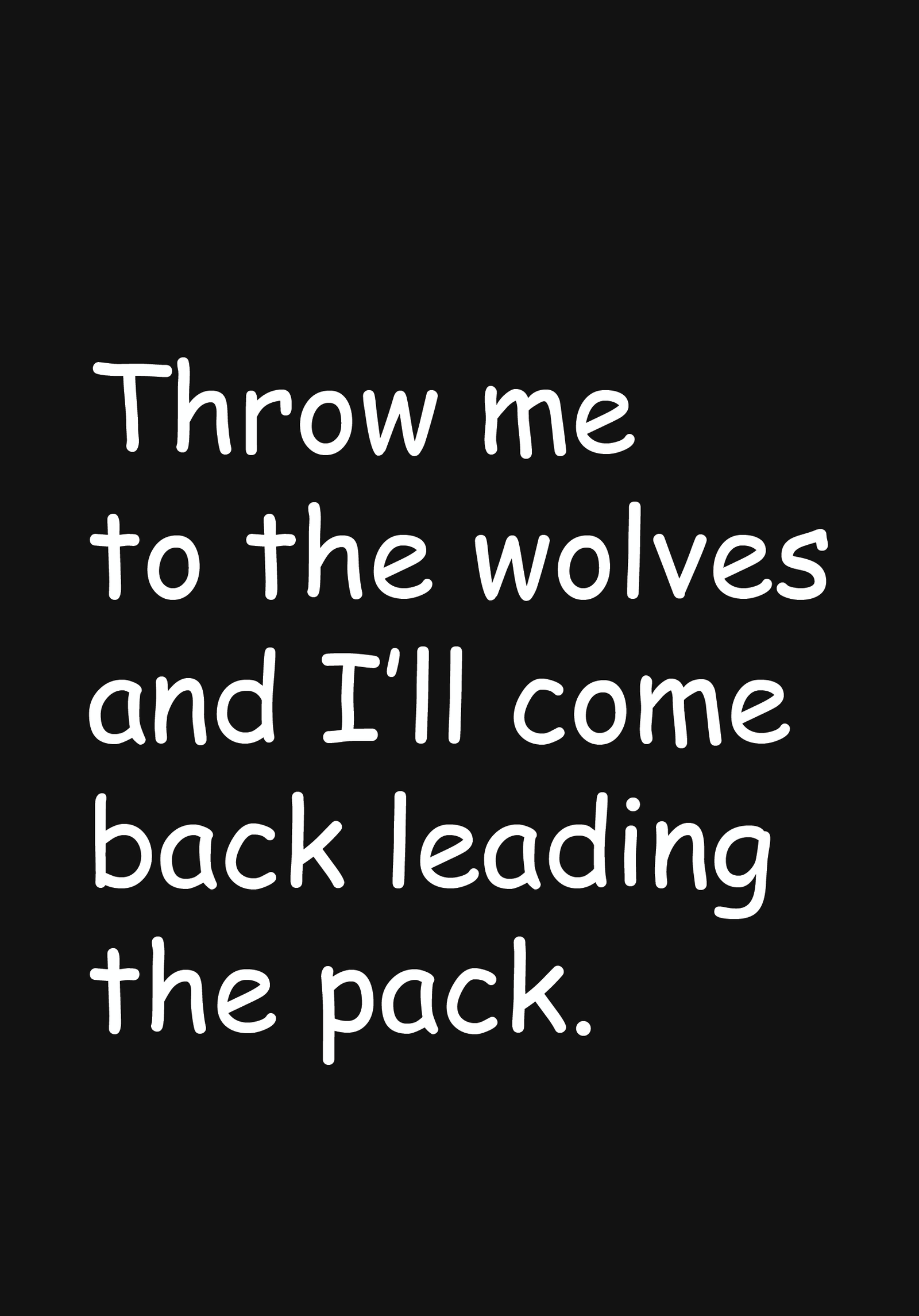 Throw me to the wloves and i'll come back leading the pack
